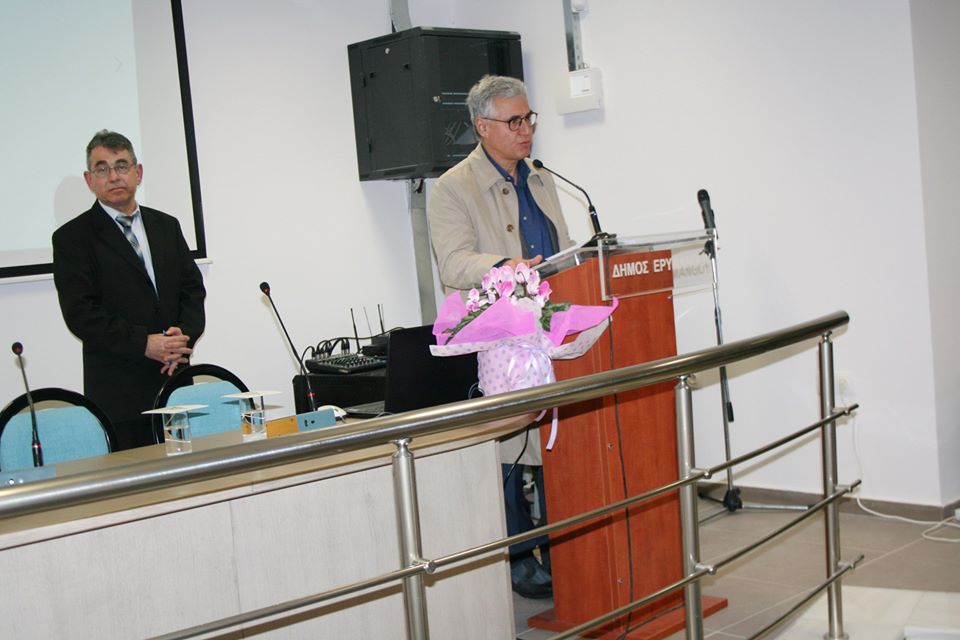 Ο κ. Γ. Βασιλακόπουλος, εκπρόσωπος της ΟΙΚΙΠΑ αφιερώνει το κομμάτι της πίτας στα κινήματα παγκόσμια και τοπικά, που αγωνίζονται για την προστασία του περιβάλλοντος.