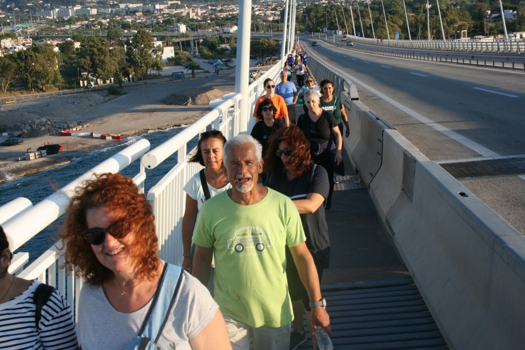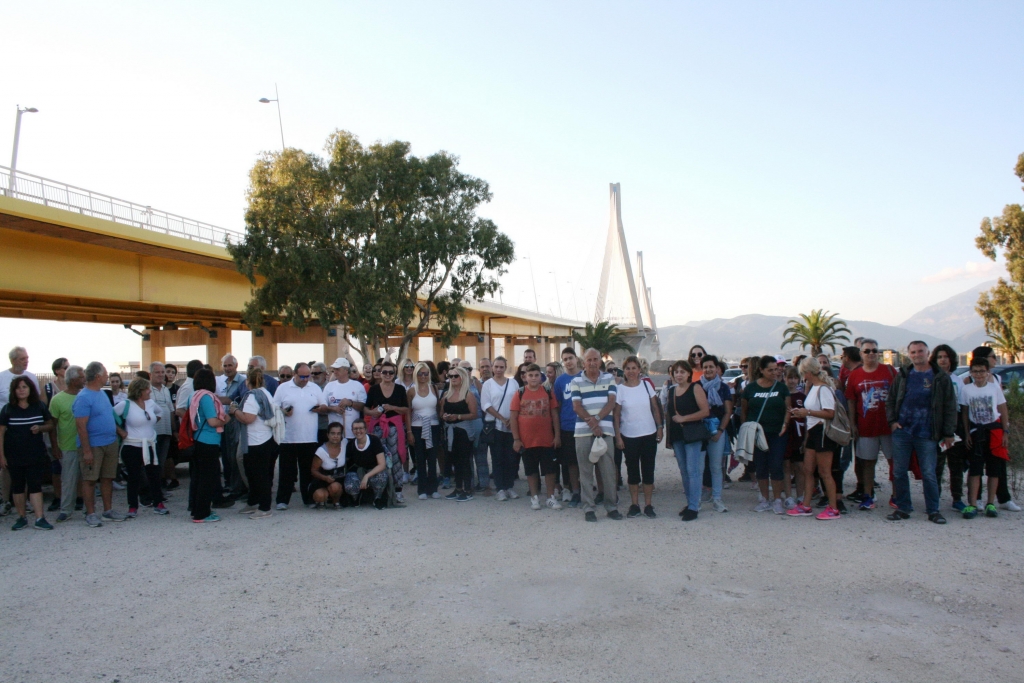 Η διάβαση της γέφυρας συνέβαλε στην ψυχική και σωματική ανάταση των πεζοπορούντων, με αφορμή την πλούσια θέα και το υπέροχο ηλιοβασίλεμα του Πατραϊκού.