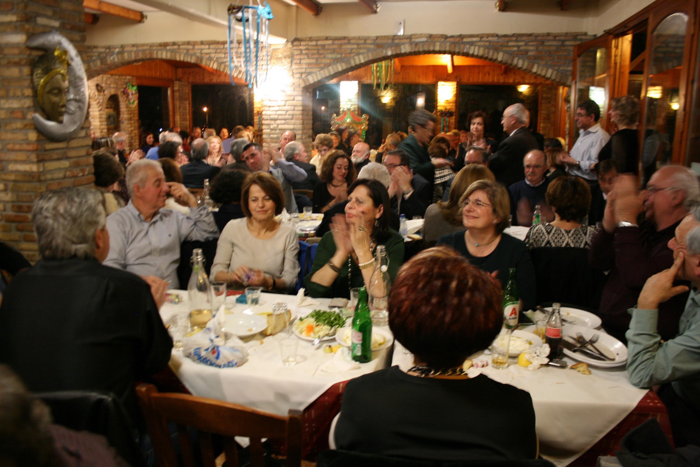 Σε πείσμα των χαλεπών καιρών αλλά και του κρύου φετινού χειμώνα , πλημμύρισαν κυριολεκτικά το χώρο , μέχρι τελευταίας σπιθαμής , και διασκέδασαν με τη ψυχή τους μέχρι τις πρώτες μεταμεσονύχτιες ώρες . Η μουσική συμπλήρωσε ευχάριστα τις γαστρονομικές απολαύσεις και το γλυκόπιοτο κρασί .