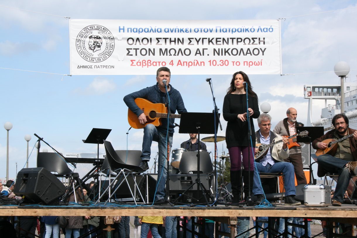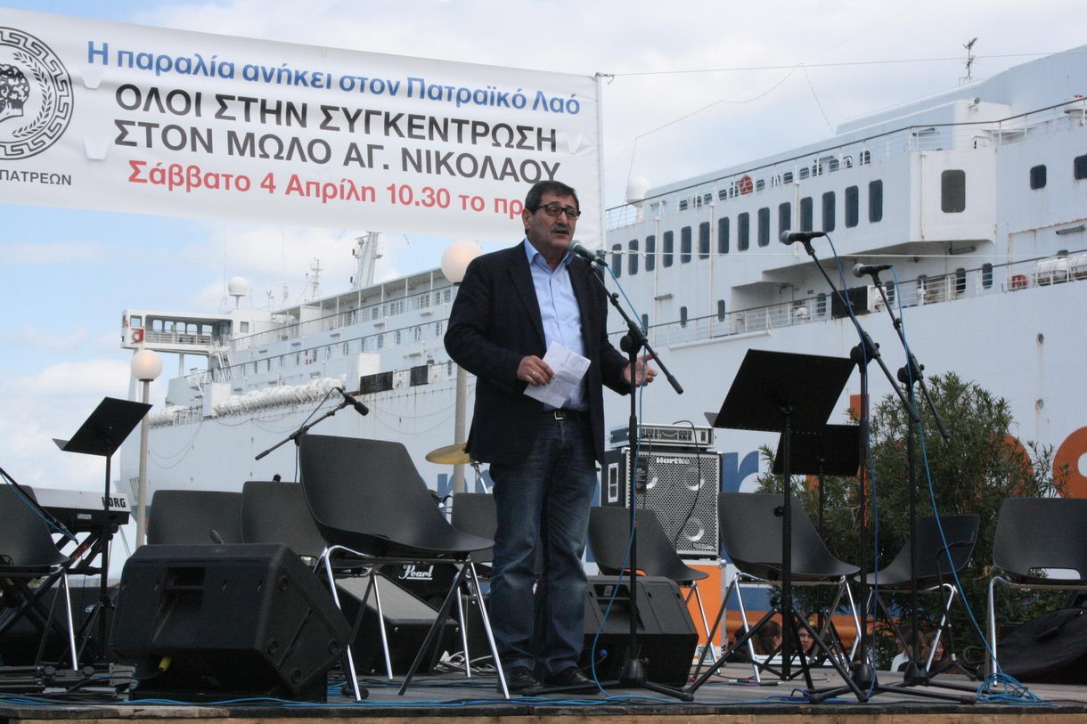 Με εκατοντάδες πολίτες του καλλικρατικού Δήμου της Πάτρας, με δεκάδες εκπροσώπους από φορείς της Περιφέρειας, Βουλευτές τους Νομού Αχαΐας, εκπροσώπους της νυν και τέως Δημοτικής αρχής της Πάτρας, της επιτροπής διεκδίκησης του Θαλάσσιου Μετώπου, του Εμπορικού Συλλόγου, του Τεχνικού Επιμελητηρίου και των Περιβαλλοντικών οργανισμών, έγινε η Παμπατραϊκή συγκέντρωση στο Μόλο της Αγίου Νικολάου, το Σάββατο 4 Απριλίου, τους οποίους είχαν προσκαλέσει ο Δήμος και η Πρωτοβουλία Ενεργών Πολιτών.